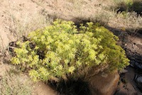 Since broom groundsel is a relatively obvious and widespread plant in our Southwestern landscape, it is not surprising that this plant has proved useful to Native Americans. Navajos are known to have used a decoction of the whole plant to produce a steam bath for treating sores. They also administrated a root decoction after childbirth to facilitate delivery of the placenta. In addition, Navajos used the root bark as chewing gum. It has been reported that Zunis would pulverize broom groundsel roots to prepare a treatment for aching bones and they would make an infusion of the flowers for application on inflamed eyes. Hopi people treated sore muscles with a poultice prepared with broom groundsel flowers, whereas a poultice of ground leaves was used on pimples and skin diseases. Broom groundsel is known to be toxic to livestock, but is rarely eaten because it is not very palatable. Furthermore it tends to turn up as randomly scattered individual plants rather than in large clumps, so grazers would be unlikely to ingest it in significant amounts. As fall transforms our grasses and shrubs to tans and browns, I am ever grateful for the occasional golden bouquets and playful white fluff balls of broom groundsel that animate our October landscape.