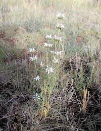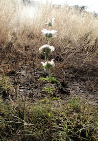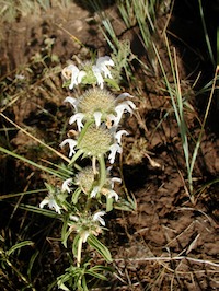 Monarda pectinata, is a member of the mint family, Lamiaceae, a large and well-known family (with 252 genera and over 6.800 species worldwide) characterized by stems that are square in cross section and leaves that are arranged in an opposite pattern along the stem. Many plants in this family have volatile oils such as menthol so some of our culinary herbs (e. g., basil, catnip, lavender, rosemary, sage, and thyme) as well as the popular houseplant Coleus are mints. The genus Monarda is endemic to North America and contains 16 species, five of which are native to New Mexico. Plains beebalm, like many mints, has edible leaves that have traditionally been used as a substitute for oregano. Native Americans are known to have ground up the leaves to flavor sausages and other meat dishes. The plant was also used to prepare a ceremonial lotion and an infusion of its flowers was used as a perfume. Medicinally, there are reports of preparations from this plant used for treating headaches, stomach disease, coughs, flu, and fever. I’d say the interesting growth form of this plant alone is sufficient for one to want to include it in a wildflower garden. So gather some seeds this fall and give it a try. You might even develop a real taste for the plains beebalm.